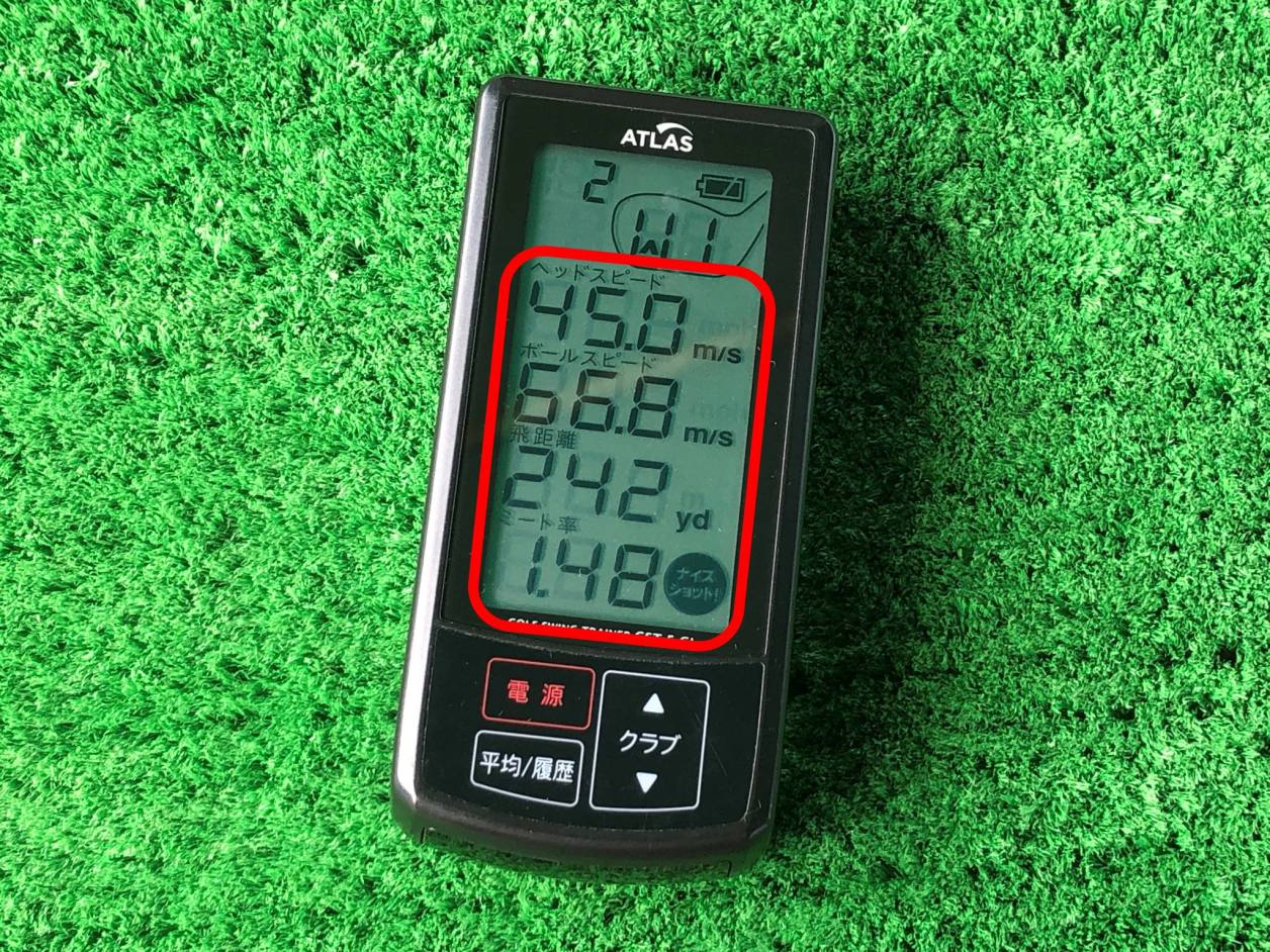 下の画像は、先日打ちっぱなし練習場で計測したものです(練習ボール使用)。